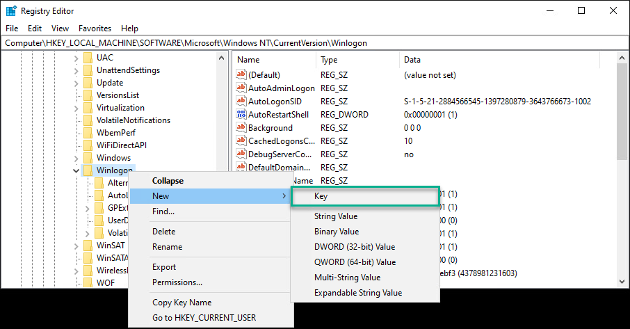 From here create two new keys nested under Winlogon: